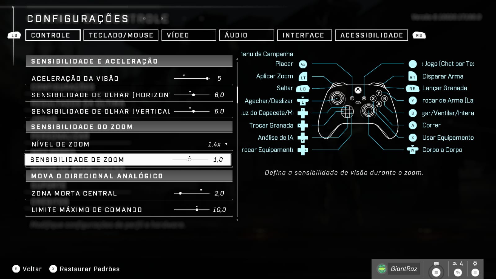 Reviews Atuais Reviews Notícias Microsoft Halo Infinite – Melhor Configuração para a Jogatina Online Por Leila Lombardo Postado em 19 de novembro de 2021 5 min de leitura Melhor configuração de controle no Multiplayer de Halo Infinite Halo Infinite finalmente chegou! E se você está tendo dificuldades saiba que uma melhor configuração pode melhorar a jogatina online. Mas, vale lembrar que no dia 15 de Novembro foi a estreia do Beta do Multiplayer. Porém, apesar de ainda não estar completo se trata de um ótimo Multiplayer. Mas, se você é novo em Halo e/ou não esta familiarizado com jogos de FPS com o TTK alto. Você pode encontrar bastante dificuldade na “trocação” de tiros. Então, criamos um tutorial para deixar o seu controle mais responsivo. Além disso, reduzir a sua curva de aprendizagem para mandar bem nas partidas. Então, como dito Halo tem o TTK alto. Ou seja, o tempo para matar é maior que em FPS normais. E isso ocorre pelo fato dos Spartans usarem armaduras conhecidas como Mjolnirs. E elas lhe permite uma proteção a vários tiros, ainda mais se forem pouco precisos. Recomendamos que você escolha entre os layouts ‘Saltador’ ou ‘Helljumpers’. Pois, estes permitem saltar usando o botão LB sem a necessidade de tirar do analógico da mira. E vai levar um tempo para se acostumar, mas vai ajudar bastante. Porém, caso você não se adapte pode usar o layout padrão ou qualquer outro. Entretanto, saiba que terão saltadores compulsivos em times adversários. E claro, combatê-los “no ar” será um problema, a menos que você consiga jogar com a pegada em garra. https://playzuando.com.br/wp-content/uploads/2021/11/WhatsApp-Video-2021-11-18-at-13.47.55.mp4 Sensibilidade e Aceleração Aceleração da visão: 5 Sensibilidade de olhar (horizontal): 6,0 Sensibilidade de olhar (vertical): 6,0 Use essa configuração ou algo próximo disso, vai garantir uma maior resposta as ameaças, um inimigo por trás poderá ser um problema se os valores forem baixos demais. Zonas Mortas Entenda, ‘zona morta’ é o movimento necessário para o analógico desempenhar uma resposta, portanto recomendamos a seguinte configuração Direcional de Movimento Zona morta central: 2 Limite máximo de comando: 10 Zona morta axial: 2 Direcional de Olhar: Zona morta central: 2 Limite máximo de comando: 15 Zona morta axial: 2 Deixando claro que isso é apenas um exemplo e você pode adaptar da forma que bem quiser, o importante é ir testando ate achar uma ideal para você. Confira abaixo as imagens: Então, confere ai as dicas no Nes 8 Bits em sua aventura por Halo Infinite. Curte ficar por dentro do mundo dos games, acessórios e muito mais? Então, se inscreva em nosso canal do Youtube Curte Podcasts? Então ouça o Playzuandocast, o Podcast da zueira e dos games! Disponível no Itunes, Deezer, Google Podcasts, além do Amazon Music e Spotify! Quer que algum jogo ou série que você conhece seja pauta nossa? Então, entre em contato conosco. Compartilhe isso: Clique para compartilhar no WhatsApp(abre em nova janela) WhatsApp Clique para compartilhar no Telegram(abre em nova janela) Telegram Clique para compartilhar no Facebook(abre em nova janela) Facebook Clique para compartilhar no X(abre em nova janela) 18+
