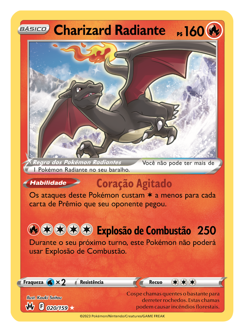Pokémon Notícias Pokémon – Expansão Realeza Absoluta já disponível Por Leila Lombardo Postado em 13 de fevereiro de 2023 6 min de leitura A nova expansão do Pokémon Estampas Ilustradas já está disponível A expansão Realeza Absoluta apresenta novos estilos de arte e ilustrações exclusivas, com foco em cartas com artes alternativas. Incluindo, pela primeira vez, Pokémon V-ASTRO com artes especiais. Além disso, ela também apresenta a Galeria de Galar com 70 cartas, destacando Pokémon regulares, Pokémon V, Pokémon VMAX, Pokémon V-ASTRO e cartas de Apoiadores. Dessa forma, essas cartas contêm ilustrações especiais que permitem aos fãs descobrir a particularidade de cada Pokémon ou personagem. Na Galeria de Galar estão incluídos Mewtwo V-ASTRO, Darkrai V-ASTRO e Zoroark de Hisui V-ASTRO. Então temos o novo recurso de unir ilustrações. Dessa forma, ele oferece aos Treinadores a chance de colecionar e montar nove cartas diferentes da Galeria de Galar para revelar uma imagem ainda maior. Confira mais detalhes da Realeza Absoluta: Coleção Regieleki V ou Regidrago V de Realeza Absoluta: contém 6 pacotes de booster de Realeza Absoluta, sendo uma 1 carta promocional e 1 carta extragrande de Regieleki V ou Regidrago V, além de 1 carta holográfica promocional adicional. Além disso, os Treinadores podem aguardar o lançamento dos seguintes produtos da expansão Realeza Absoluta em breve: Coleção Treinador Avançado de Realeza Absoluta (disponível em março de 2023): contém 20 pacotes de booster de Realeza Absoluta, 1 carta com textura e arte especiais de Lucario V-ASTRO e além de outros acessórios de jogo. Coleção especial Pikachu VMAX de Realeza Absoluta (disponível em março de 2023): contém 8 pacotes de booster de Realeza Absoluta, sendo uma 1 carta promocional com textura especial de Pikachu VMAX, 1 uma carta extragrande promocional de Pikachu VMAX e além de 1 carta holográfica promocional de Pikachu V. Coleção Rillaboom, Cinderace ou Inteleon de Realeza Absoluta (disponível em março de 2023): contém 3 pacotes de booster de Realeza Absoluta e 1 carta promocional de Rillaboom, Cinderace ou Inteleon. Coleção Morpeko V-UNIÃO de Realeza Absoluta (disponível em abril de 2023): contém 8 pacotes de booster de Realeza Absoluta, 4 cartas promocionais com textura especial de Morpeko V-UNIÃO, 1 carta da Professora Bruna e 1 carta extragrande. Coleção especial de Realeza Absoluta: Zacian Brilhante ou Zamazenta Brilhante (disponível em abril de 2023): contém 8 pacotes de booster de Realeza Absoluta, 1 carta promocional com textura especial de Zacian V Brilhante ou Zamazenta V Brilhante e 1 carta extragrande. Além disso, as Latas de Realeza Absoluta (disponível em maio de 2023): contêm 5 pacotes de booster de Realeza Absoluta e 1 carta promocional com arte expandida de Articuno de Galar, Zapdos de Galar ou Moltres de Galar. Curte ficar por dentro do mundo dos games, acessórios e muito mais? Então, se inscreva em nosso canal do Youtube Curte Podcasts? Então ouça o Playzuandocast, o Podcast da zueira e dos games! Disponível no Itunes, Deezer, Google Podcasts, além do Amazon Music e Spotify! Quer que algum jogo ou série que você conhece seja pauta nossa? Então, entre em contato conosco Compartilhe isso: Clique para compartilhar no WhatsApp(abre em nova janela) WhatsApp Clique para compartilhar no Telegram(abre em nova janela) Telegram Clique para compartilhar no Facebook(abre em nova janela) Facebook Clique para compartilhar no X(abre em nova janela) 18+