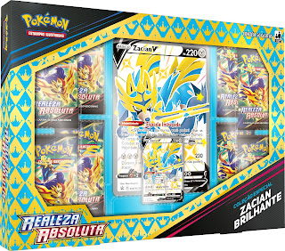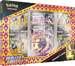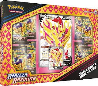 Nintendo Pokémon Notícias Realeza Absoluta – Coleção Pokémon TGC anunciada Por Leila Lombardo Postado em 3 de novembro de 2022 6 min de leitura A nova coleção Pokémon TGC já tem data para ser lançada Realeza Absoluta é a nova Coleção Pokémon TGC, já confirmada pela The Pokémon Company. E ela vai estrear no dia 20 de janeiro de 2023. Assim, a coleção trará Estampas Ilustradas Especiais, além de artes alternativas, incluindo, pela primeira vez, Pokémon V-ASTRO com artes especiais. Então, confira algumas imagens da expansão TGC: Assim sendo, a Galeria de Galar, conta com 70 cartas que destacam Pokémon regulares, Pokémon V, Pokémon VMAX, Pokémon V-ASTRO, além das cartas de Apoiadores com ilustrações especiais que realçam a particularidade de cada Pokémon e personagem. Então, os fãs podem se preparar para encontrar Mewtwo V-ASTRO, Darkrai V-ASTRO e Zoroark de Hisui V-ASTRO na Galeria de Galar. Além disso, com um recurso de unir ilustrações, os Treinadores terão a chance de colecionar e montar nove cartas diferentes da Galeria de Galar e dessa forma revelar uma imagem ainda maior. Assim sendo, confira algumas cartas notáveis desta expansão incluem: 17 Pokémon V 5 Pokémon VMAX 8 Pokémon V-ASTRO, incluindo Zacian V-ASTRO e Zamazenta V-ASTRO 3 Pokémon Radiantes destacando Charizard Brilhante, Charjabug Brilhante, Eternatus Brilhante As cartas da expansão Realeza Absoluta estarão disponíveis nos seguintes produtos: Coleção Treinador Avançado de Realeza Absoluta (disponível em janeiro de 2023): São 20 pacotes de booster de Realeza Absoluta, além de 1 carta com arte especial de Lucario V-ASTRO, assim como outros acessórios de jogo. Coleção de Rillaboom, Cinderace ou Inteleon de Realeza Absoluta (disponível de janeiro de 2023): Contém 3 pacotes de booster de Realeza Absoluta, assim como 1 carta promocional de Rillaboom, Cinderace ou Inteleon. Coleção Regieleki V ou Regidrago V de Realeza Absoluta (disponível em janeiro de 2023): Traz 6 pacotes de booster de Realeza Absoluta, além de 1 carta promocional e 1 carta extragrande de Regieleki V ou ainda Regidrago V. Coleção especial Pikachu VMAX de Realeza Absoluta (disponível em fevereiro de 2023): Contém 8 pacotes de booster de Realeza Absoluta, além de 1 carta promocional com textura especial de Pikachu VMAX, assim como 1 carta holográfica promocional de Pikachu V e uma carta extragrande promocional de Pikachu VMAX. Coleção Morpeko V-UNIÃO de Realeza Absoluta (disponível em abril de 2023): São 8 pacotes de booster de Realeza Absoluta, contendo 4 cartas que formam Morpeko V-UNIÃO, 1 carta da Professora Bruna e 1 carta extragrande de Morpeko V-UNIÃO. Coleção especial de Realeza Absoluta: Zacian Brilhante ou Zamazenta Brilhante (disponível em maio de 2023): Contém 8 pacotes de booster de Realeza Absoluta, 1 carta promocional com textura especial de Zacian V Brilhante ou ainda Zamazenta V Brilhante, além de carta extragrande com textura especial de Zacian V Brilhante ou Zamazenta V Brilhante. Latas de Realeza Absoluta (disponível em maio de 2023): Contém 5 pacotes de booster de Realeza Absoluta, 1 carta promocional com arte expandida de Articuno de Galar, Zapdos de Galar ou Moltres de Galar. Curte ficar por dentro do mundo dos games, acessórios e muito mais? Então, se inscreva em nosso canal do Youtube Curte Podcasts? Então ouça o Playzuandocast, o Podcast da zueira e dos games! Disponível no Itunes, Deezer, Google Podcasts, além do Amazon Music e Spotify! Quer que algum jogo ou série que você conhece seja pauta nossa? Então, entre em contato conosco. Compartilhe isso: Clique para compartilhar no WhatsApp(abre em nova janela) WhatsApp Clique para compartilhar no Telegram(abre em nova janela) Telegram Clique para compartilhar no Facebook(abre em nova janela) Facebook Clique para compartilhar no X(abre em nova janela) 18+